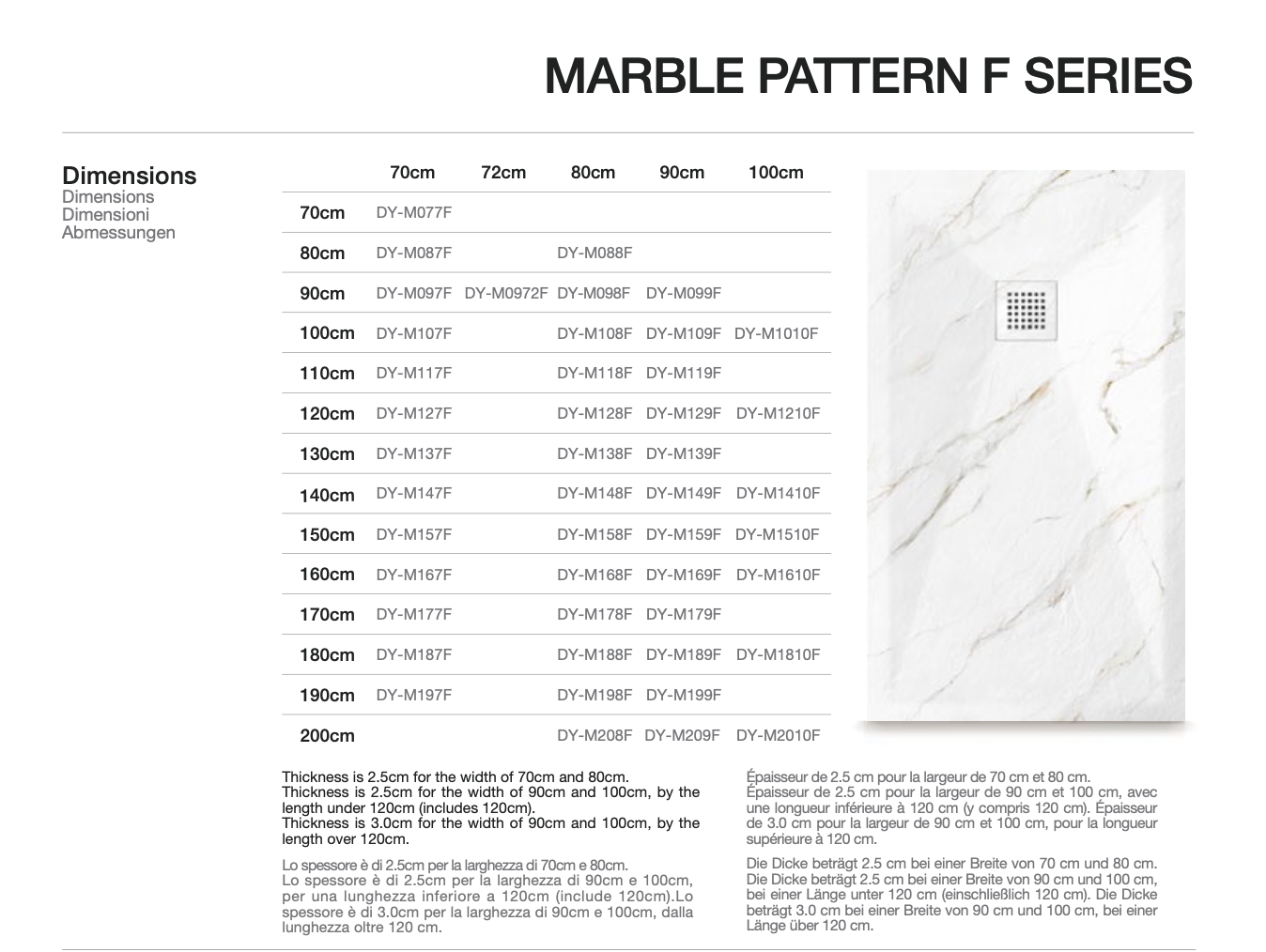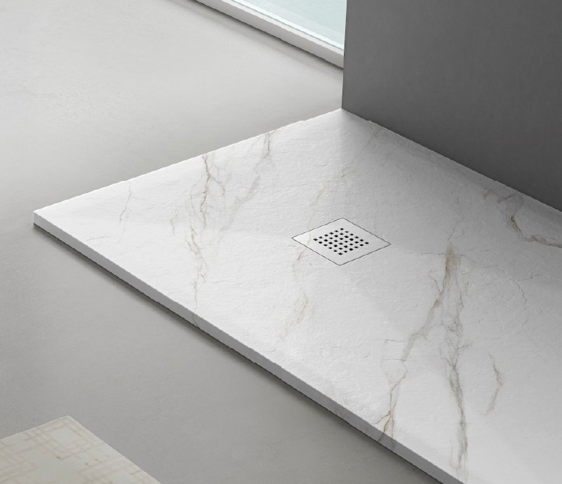 This solid surface marble-look shower tray features a clean, minimalist design with a refined marble-look texture, offering both aesthetic appeal and everyday practicality. Its sleek rectangular form blends effortlessly into modern bathrooms, making it an ideal choice for residential, hospitality, apartment, and premium project applications. Available in sizes ranging from 90 cm to 180 cm, it provides flexible solutions for different shower spaces. The tray is also offered in many kinds of different marble patterns, allowing easy coordination with a wide range of interior styles.